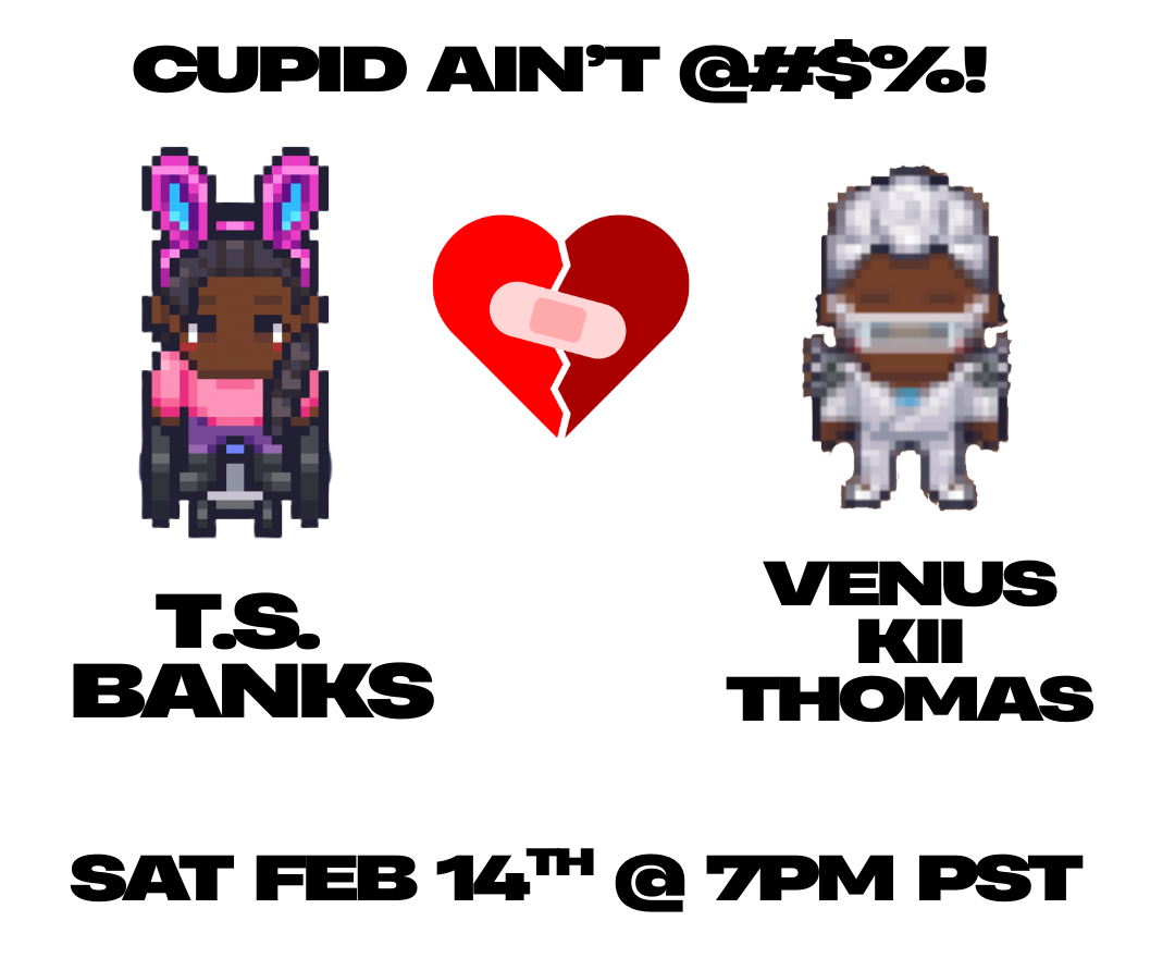 💔Next Saturday, February 14th at 7pm PST, we will be bringing the internationally acclaimed tour Cupid Ain't @#$%!: An Anti-Valentine's Day Poetry Movement back to Garden! Part heartbreak, political rants, humor, bitter love poems and YOU, this year's event will be featuring poets T. S. Banks & Venus Kii Thomas, an open mic portion and a haiku slam. Hosted by J Mase III. Come ready to crown the Anti-Valentine's Day Haiku Slam Champion! RSVP here! Have BIPOC friends that would like to come through, but aren't members of Garden? Have them sign up for a Day Pass here! (Please sign up by 11:59pm PST Feb 13th.)