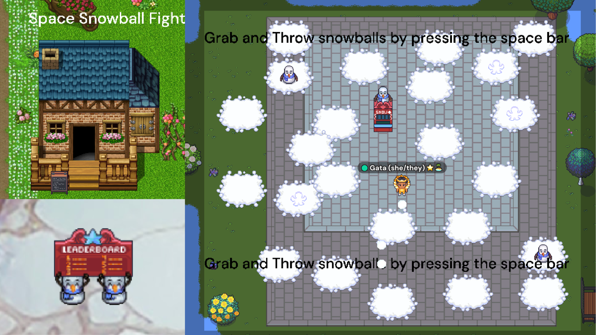 Have you thrown a snowball in Garden? We have two snowball machines, one located in Garden Lobby and another one on the Space Snowball Fight Room via Garden Map. Snowball fights can get pretty competitive since there is scoreboard located in the Space Snowball Fight room on the Garden map. Do you know who is 1st place? Come find out and pick up a snowball while you're here! Be sure to ask for consent before throwing a snowball at someone.